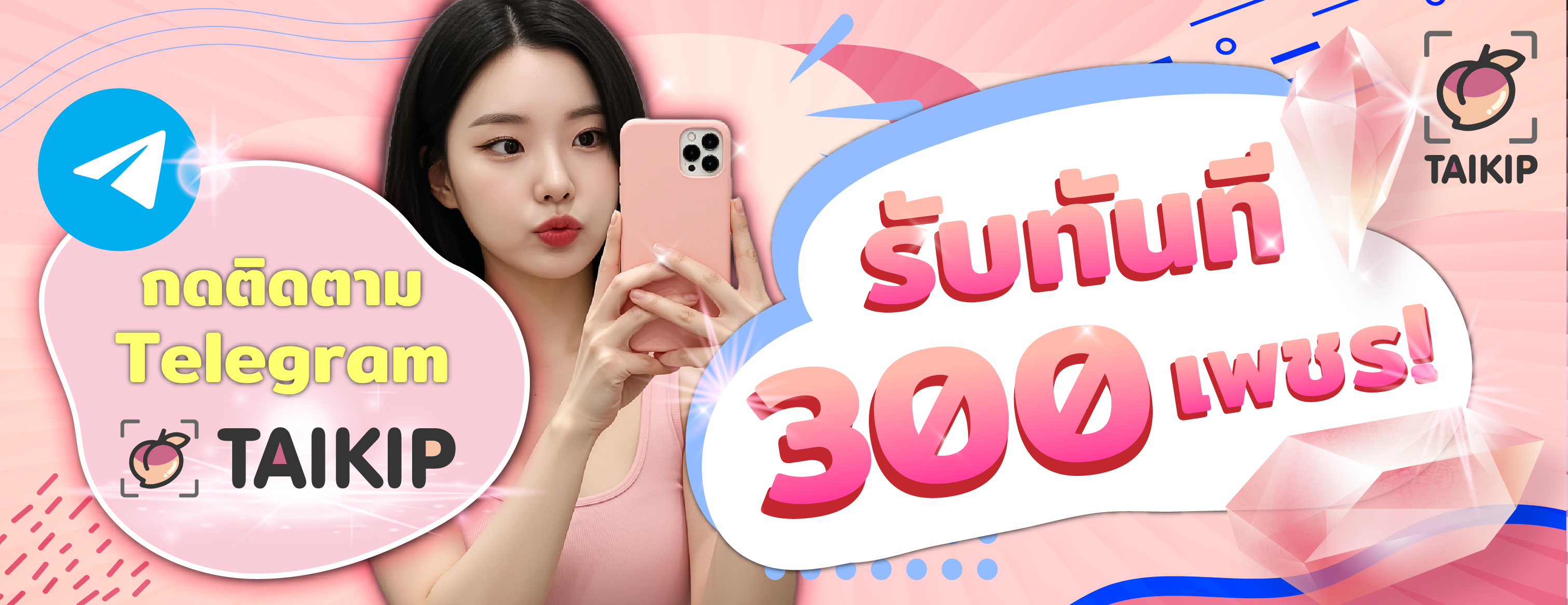 เนื้อหากิจกรรม: เมื่อท่านกดติดตามช่อง Telegram TAIKIP แล้ว กรุณาแคปรูปและemail ที่ใช้ลงทะเบียนเป็นสมาชิก TAIKIP มาลงในช่องทางที่แอดมินกำหนดรับทันที 300 เพชร
